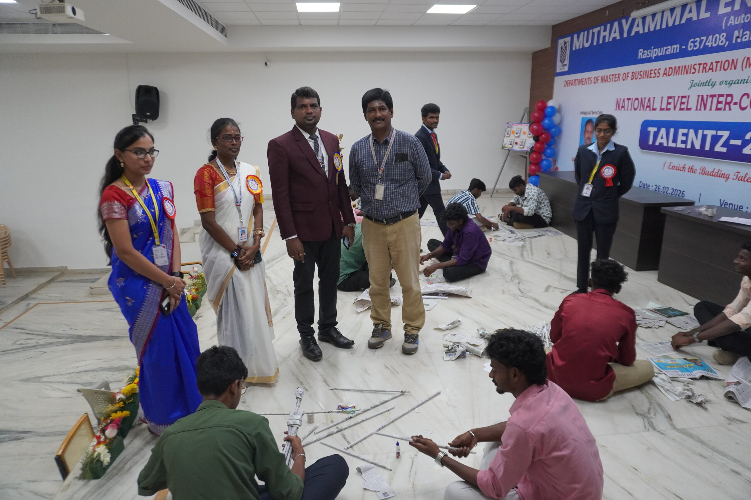 On February 26, 2026, the Departments of Master of Business Administration (MBA) and Master of Computer Applications (MCA) Jointly organized an Intercollegiate Meet titled TALENTZ – 2K26. The event was graced by Dr. P. Thirumoorthi, Professor, Department of Management Studies, Periyar University, Salem, and Dr. P. Kamalakkannan, Associate Professor, Department of Computer Science, Arignar Anna Government Arts College, Namakkal, who served as the resource persons for the event. During the session, Dr. P. Thirumoorthi enlightened the students on various aspects of the global economy and the future of Artificial Intelligence. Dr. P. Kamalakkannan addressed, the students on the importance of higher studies, and distributed prizes to the winners. The event witnessed active participation from both students and Faculty members.