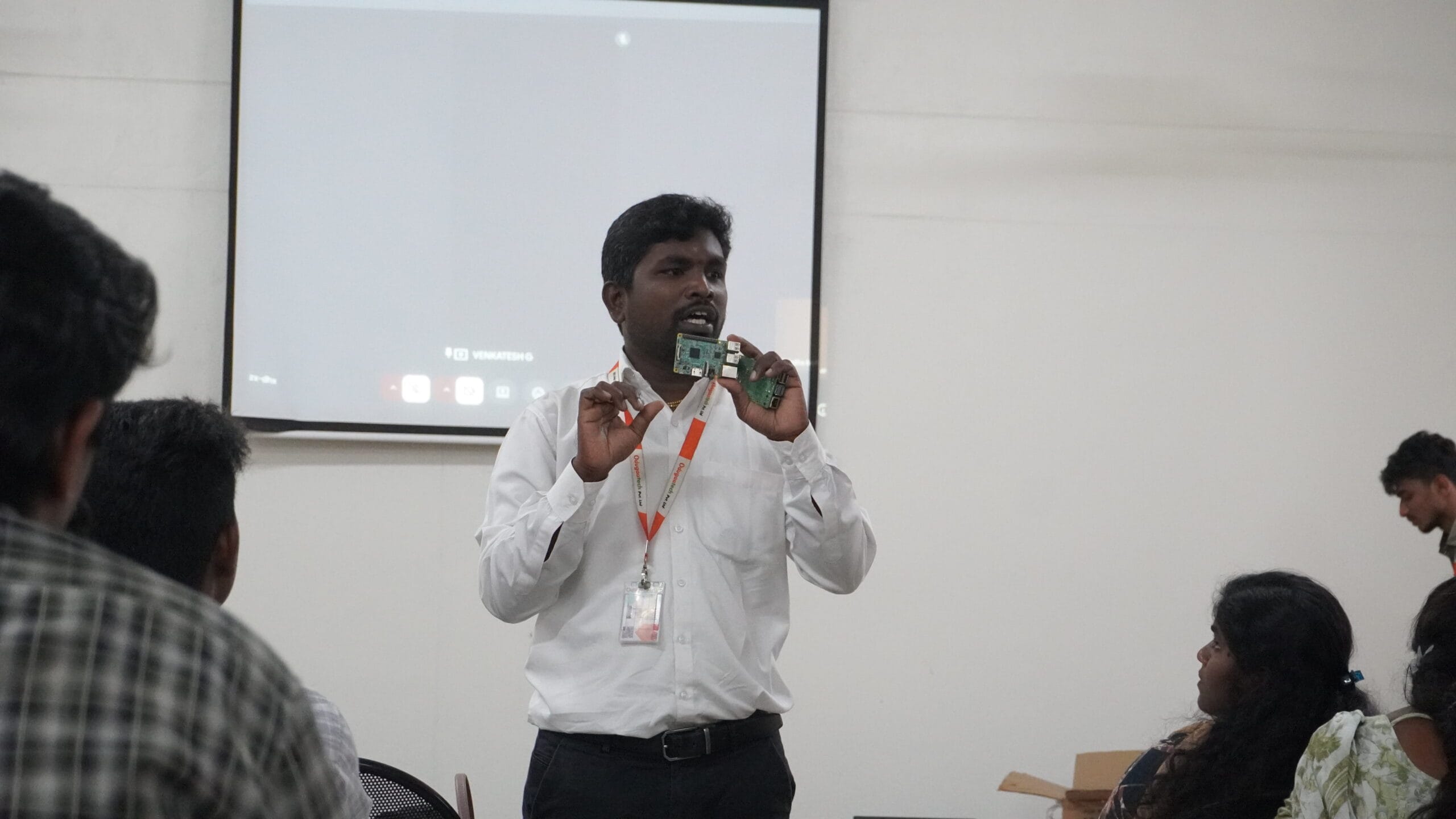 Mr. G. Venkatesh, Software Developer at OdugaaTech Private Limited, Salem, delivered a session on real-time monitoring for seamless data sharing in patient care. He highlighted how IoT and IoMT are transforming modern healthcare by enabling real-time monitoring and establishing effective links between patients, healthcare providers, and medical systems. This integration fosters a patient-centric, data-driven healthcare ecosystem that significantly enhances efficiency, accuracy, and accessibility.