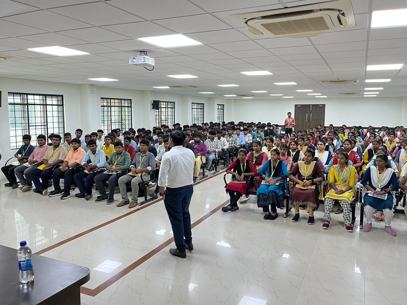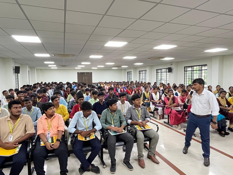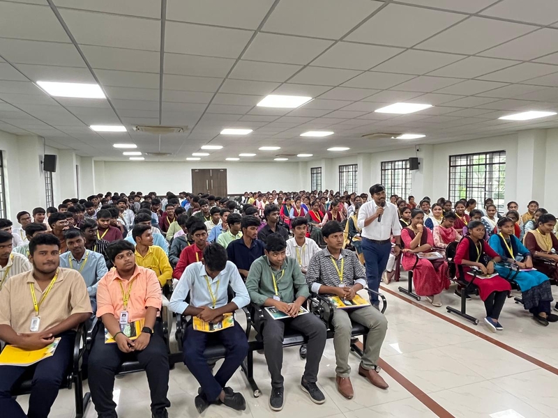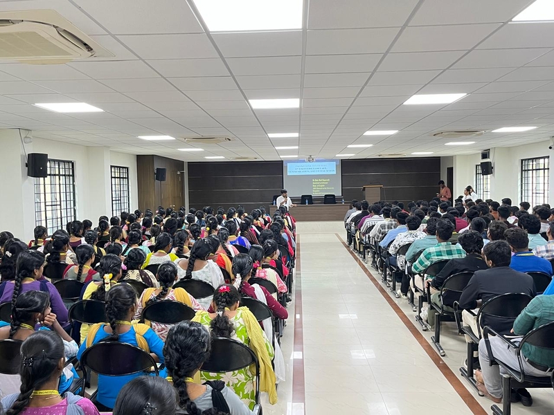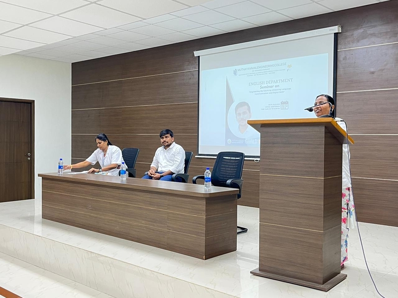 The Seminar on “Engineering the future by Unlocking Language, Communication and Digital Skills” was successfully organized by the Department of English at Muthayammal Engineering College on 02.12.2025 with a participation of over 250 first-year B.E. and B.Tech students. Dr.Balu Naik Depavath, Assistant Professor of Jain (Deemed to be University), delivered an insightful speech means of preparing students for tomorrow’s world by strengthening how they speak, write, interact and use technology. He insisted how individuals should master these skills and to learn faster, work smarter, solve problems creatively and succeed in modern industries. Together, these abilities help build a more innovative, connected and technologically advanced future. The students were appreciated by the Management and Faculty members for their attentive listening and active involvement.