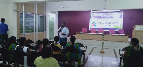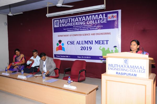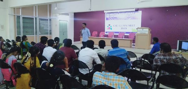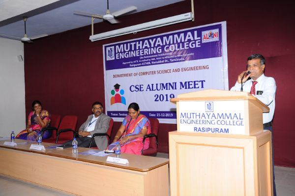 ALUMNI INTERACTION on ALUMNI MEET-2019 (Batches from 2004 to 2019) organized by the Department of Computer Science and Engineering on 21/12/2020 in Seminar Hall-I. The Chief Guest of this Event is Dr.K.Gunasekaran, Secretary, Muthayammal Education Trust and Research Foundation, Rasipuram. They briefed the students regarding Graduate Aptitude Test in Engineering (GATE), which is a stepping stone, not only for higher studies in the engineering discipline but also for various other avenues, such as placement. They emphasized the importance of early preparation and thorough understanding of basic concepts for securing a good score and encouraged the students to opt for GATE as part of their career planning. He guided the students on approach towards GATE and responded to various queries related to the same.
