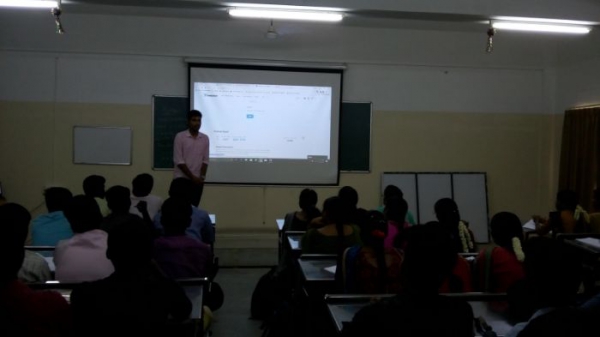 Workshop on “Grid and Cloud Computing” organized by the Department Of Information Technology on 20.09.2016 and 21.09.2016 at programming laboratory. Shri S.Baskar, Asst., Chief Executive Officer, Linux Expert Systems, Bangalore, the Chief Guest of the programme. Students had hands-on working experience in developing applications using cloud database. Mr. A.S.Prabaharan honoured the chief guest with special memento.