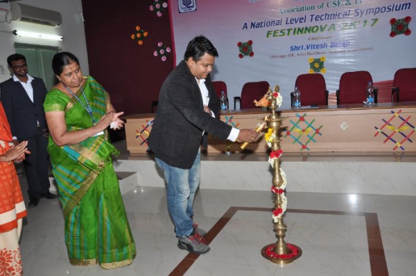 TECHNICAL SYMPOSIUM “TECH FIESTA 2017” was organized by the Department of Information Technology on 25.09.2017 at 09.30 am in Seminar Hall II. Symposium activities were inaugurated with the prayer song and by lighting the kuthuvilakku. Mr.A.S.Prabaharan, Head of the Department welcomed the gathering and the Chief Guest Mr.Vitesh Balaji, Manager HR, Atlas Health Care, Chennai. Honorable Secretary, Dr.K.Gunasekaran delivered the presidential address. Our beloved Principal, Dr.S.Nirmala delivered the principal address and honoured the chief guest with the bouquet and a memento. The chief guest, given a lecture about the importance of professional education, the expectations of companies from engineering students and the steps to improve the skill sets to compete in the IT industry. He thanked the college, department, staff members and students for their effort in making the event a great success. Various events were conducted and prizes were given to the participants.