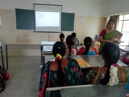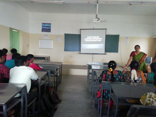 Department of Computer Science and Engineering Organized a Guest Lecture on the topic of Object Oriented Language Contribution towards Design Tool held on 12-10-2019 .Dr.P.Keerthika Asst. Prof, Dept. of CSE Kongu Engineering College, Perundurai, devilered gave for exploring the idea of OOAD tools to the III year students. Topics covered were Introduction to Object Oriented Analysis and Design, UML Diagrams, Patterns Template, Design Tools using C++ and Java.
