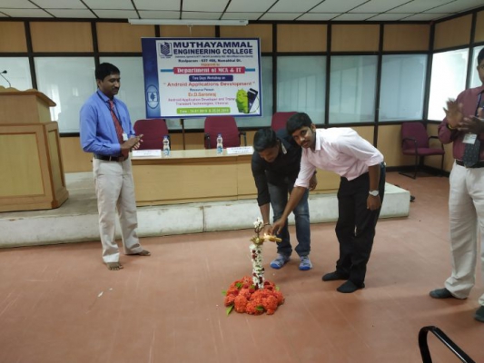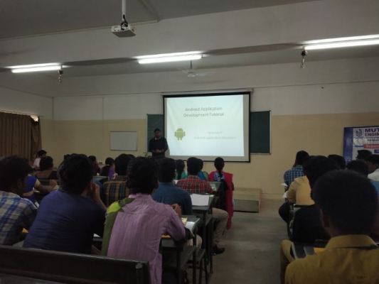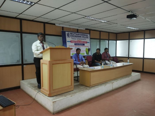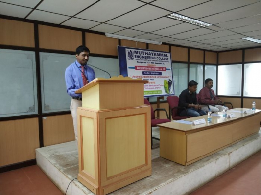 Workshop on “Android Applications Development” organized by the Department of Information Technology on 24th January 2019 at 09.30 AM in Seminar Hall-II. Er.D.Saranraj, Android Application Developer and Trainer, Transient Technologies, Chennai, the Chief Guest of the event. Students actively participated in the programme and they had hands-on experience of developing Android Applications.