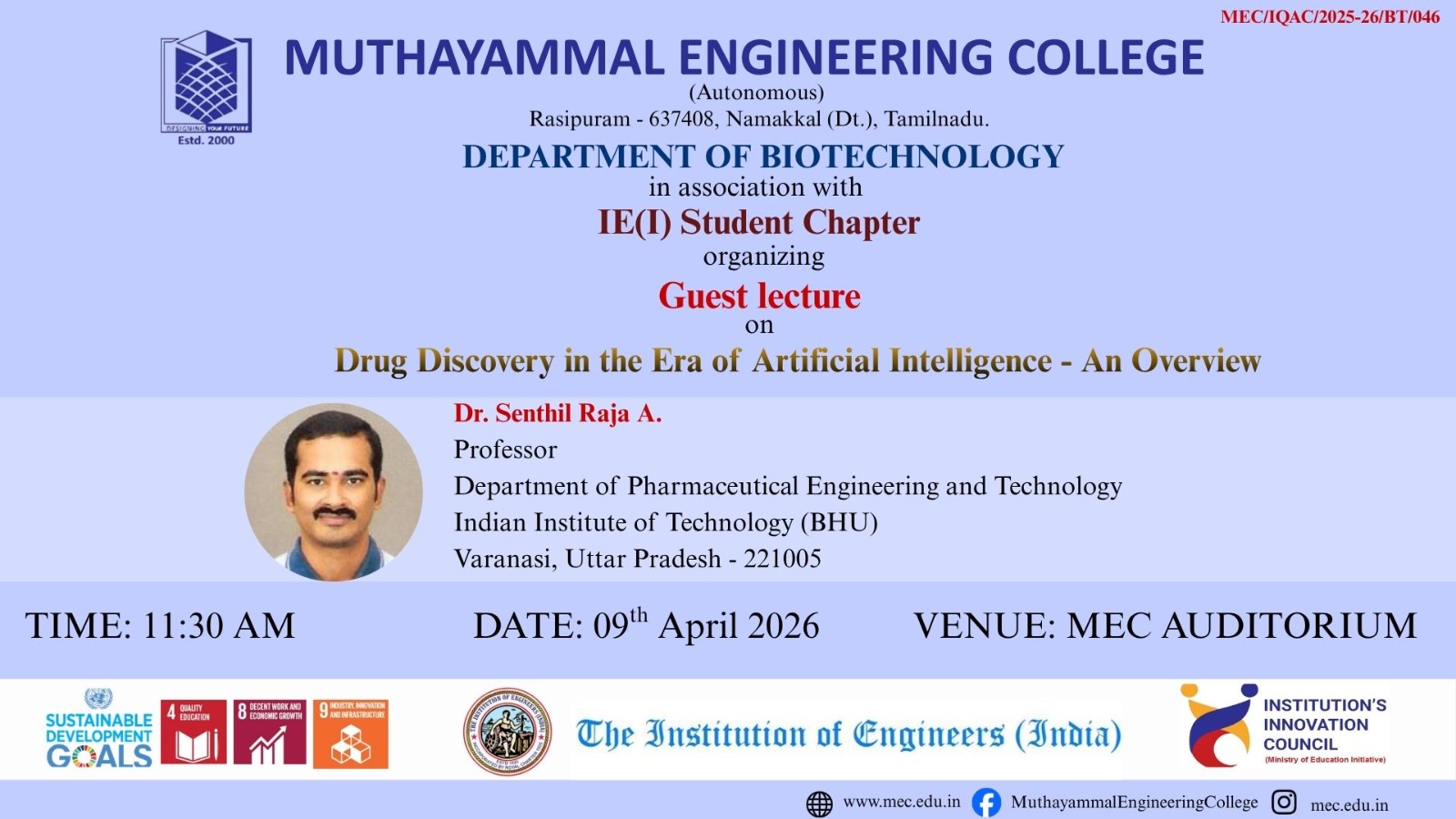Home / Upcoming Events / Guest Lecture on Drug Discovery in the Era of Artificial Intelligence – An Overview