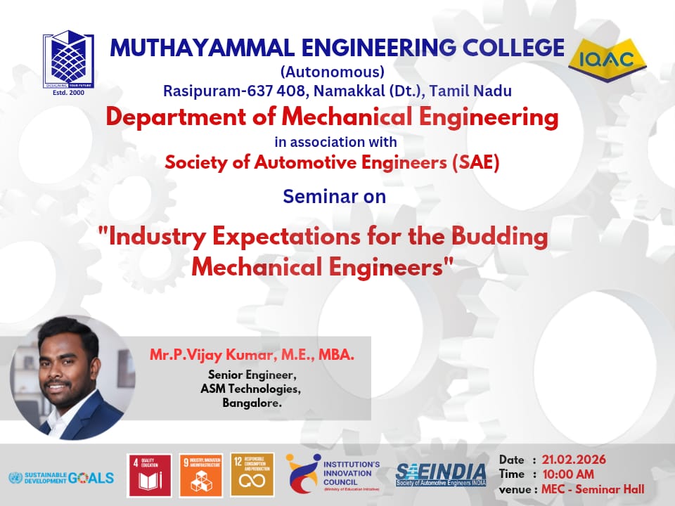 Name of the Event : Seminar on Industry Expectations for the Budding Mechanical Engineers